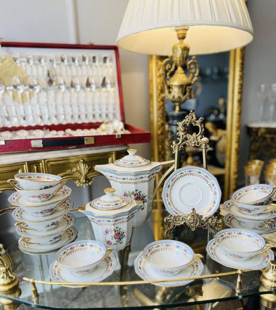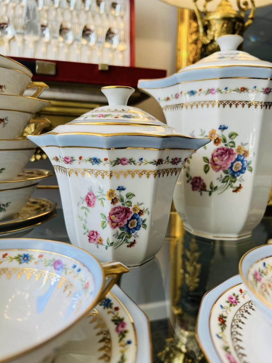 ♦ Kolekcinės vertės porceliano servizas, pagamintas 1929 m. Prancūzijoje. Žymė „Limoges Unique“ rodo, kad indai buvo ne tik pagaminti Limoges regione, bet ir dekoruoti jungtinės prancūzų dekoratorių grupės, garsėjusios išskirtiniu meistriškumu bei ribotomis serijomis.