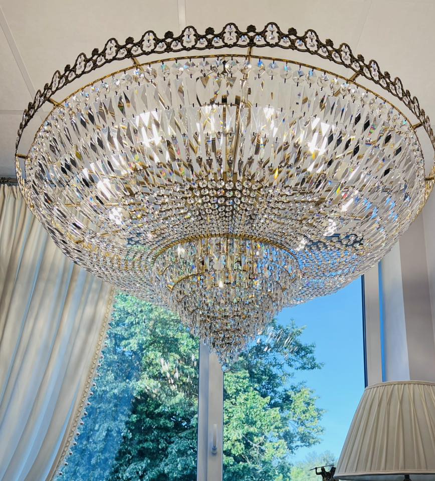 Autentiško grožio klasikinis šviestuvas, skirtas didelėms erdvėms, kur norisi išraiškingo, eleganciją spinduliuojančio akcento. Puikiai tinka reprezentacinėms salėms, viešbučių, restoranų ar dvaro stiliaus interjerams.