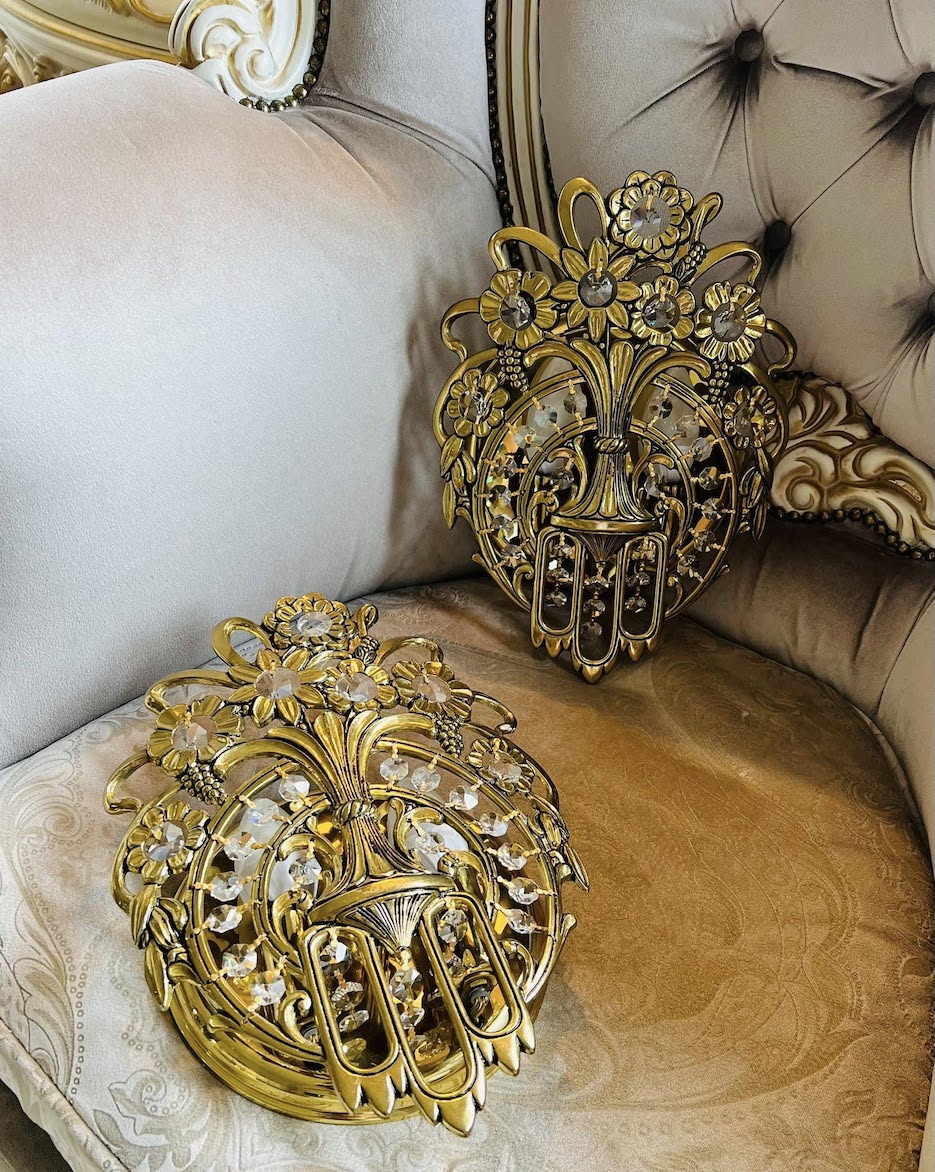 Išskirtinio dizaino pora vintažinių sieninių šviestuvų „Fiora”