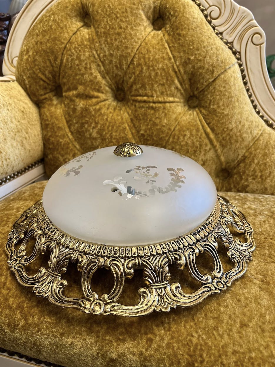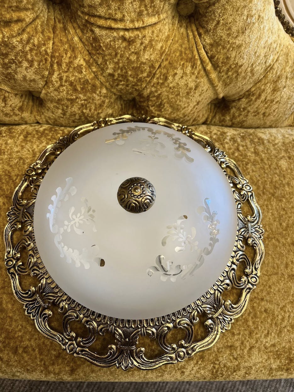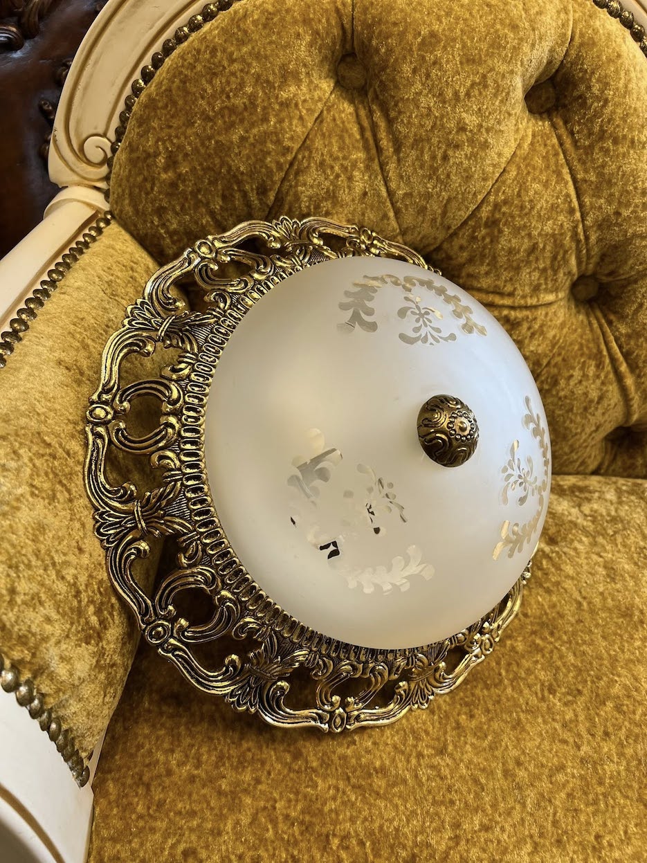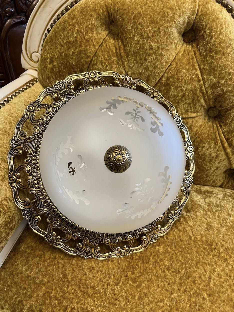 ♦ Matinis stiklo gaubtas, puoštas subtiliais gėlių ornamentais.
