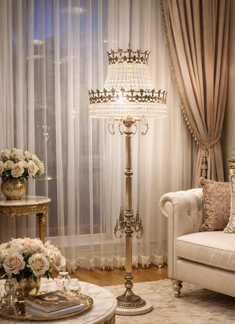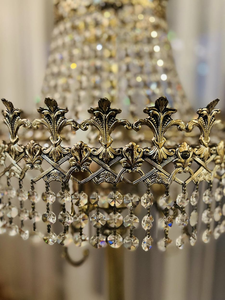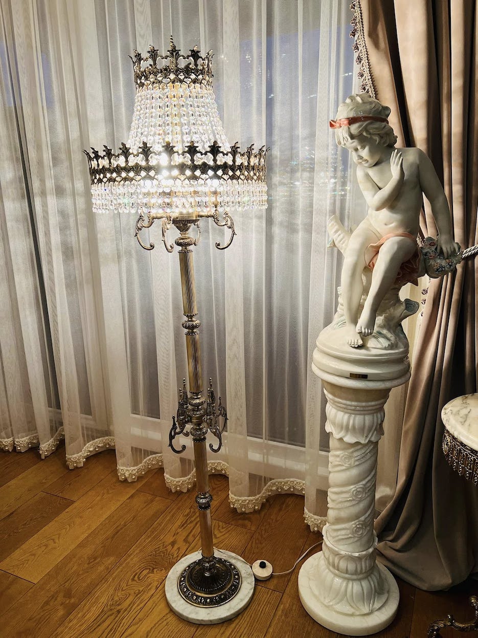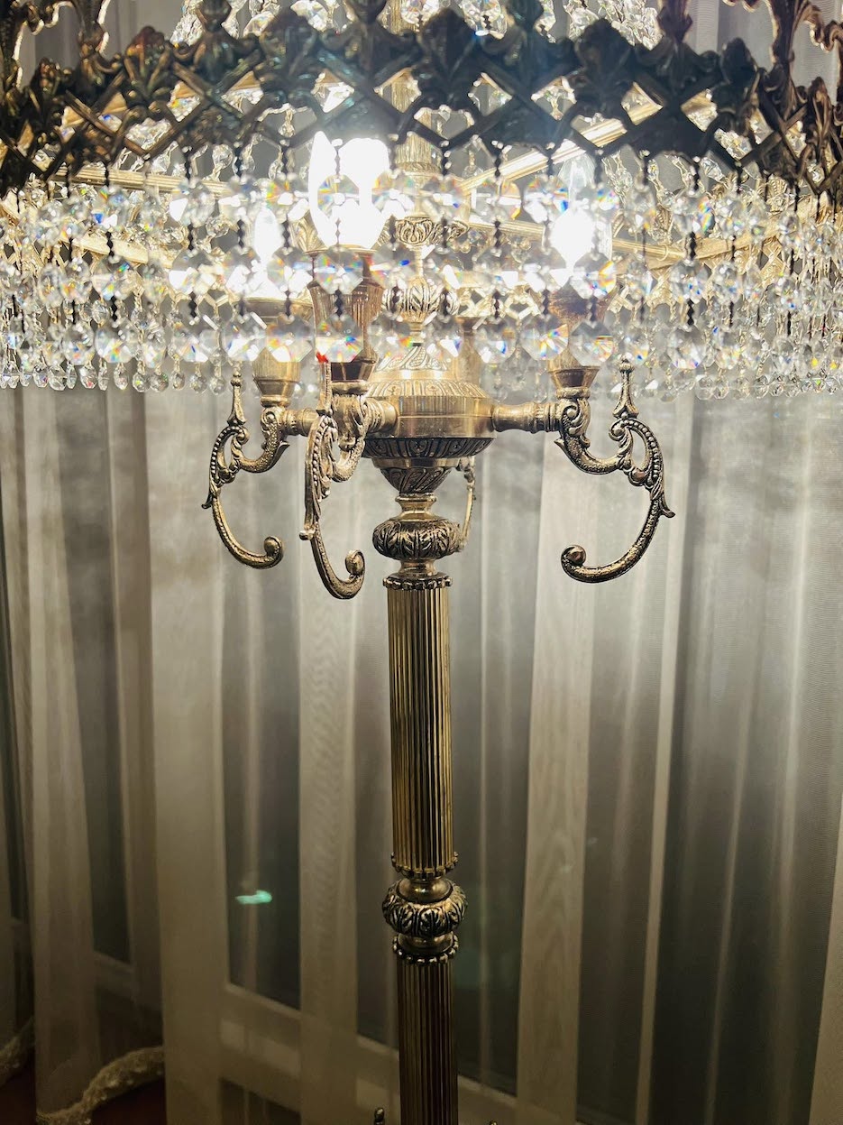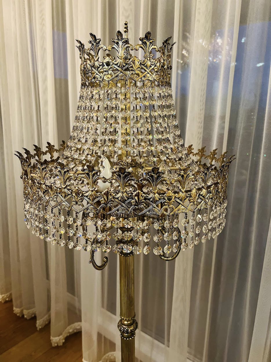 Labai gražus, vintažinis pastatomas krištolo šviestuvas „Nobile Lumiera”