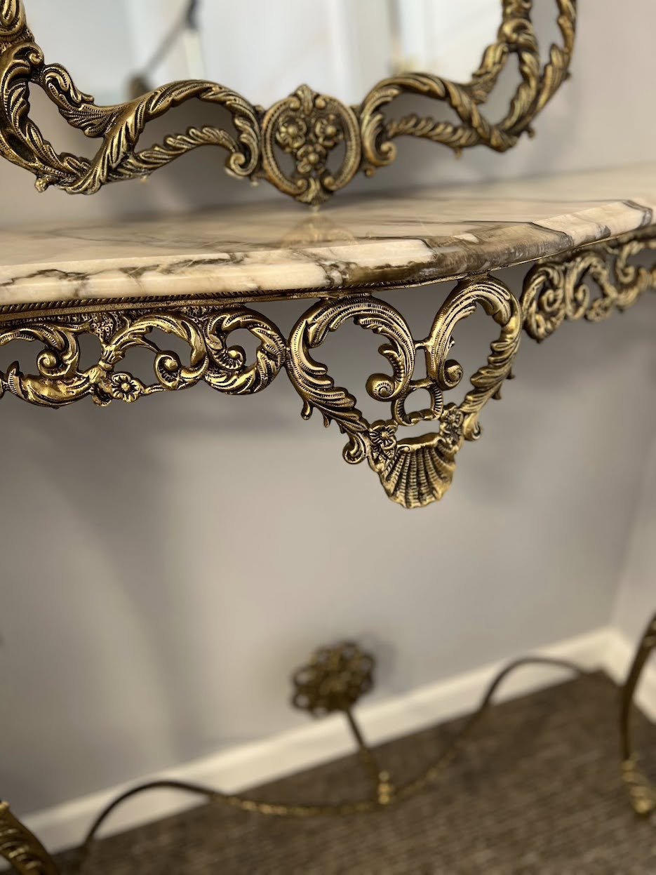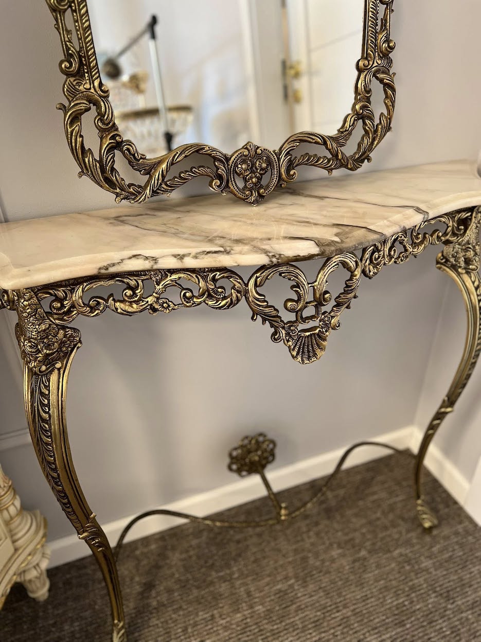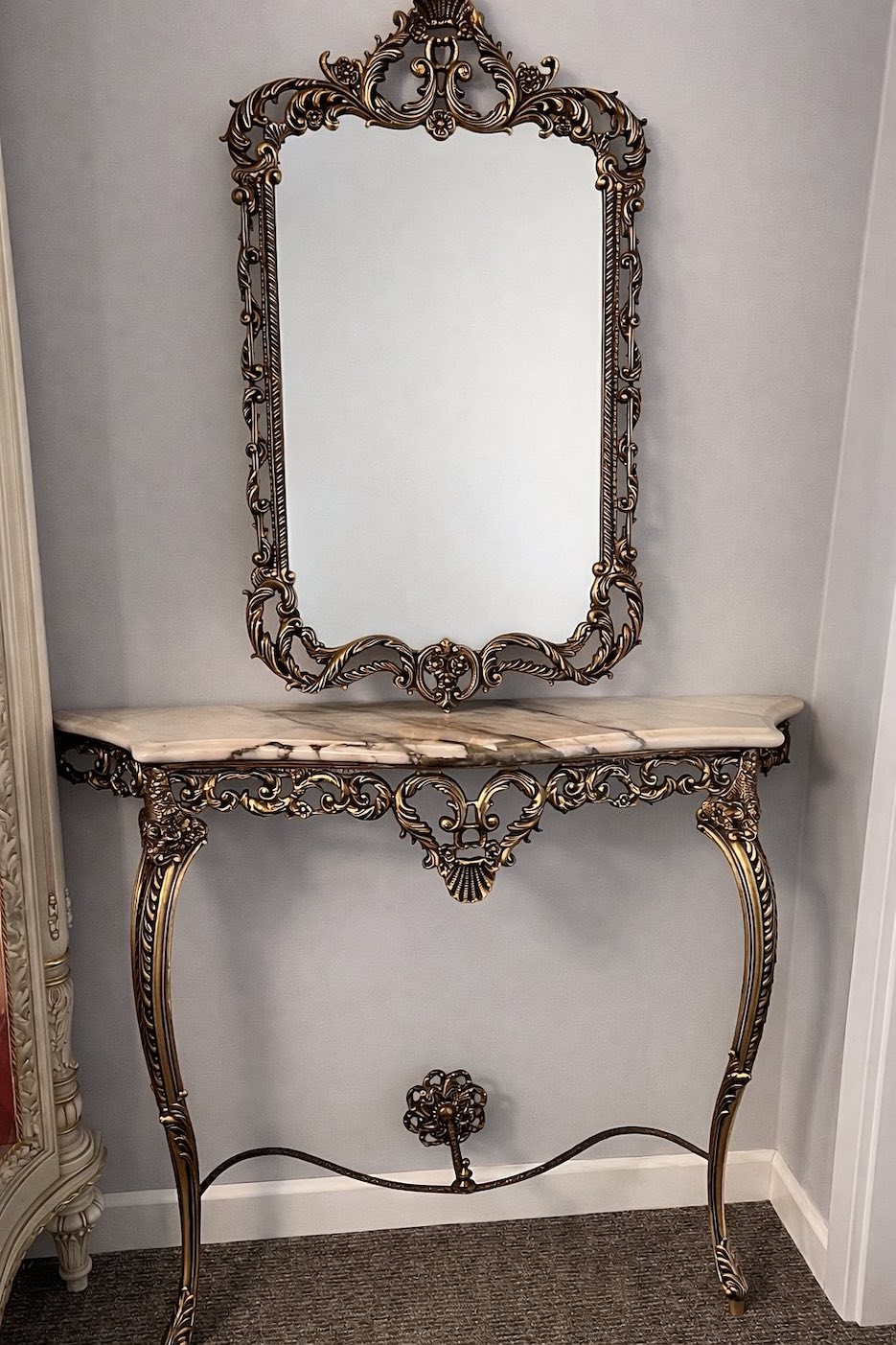 Naudota vintažinė bronzinė konsolė su marmuro stalviršiu „Specchio Royale”Prieinamumas: Liko 1