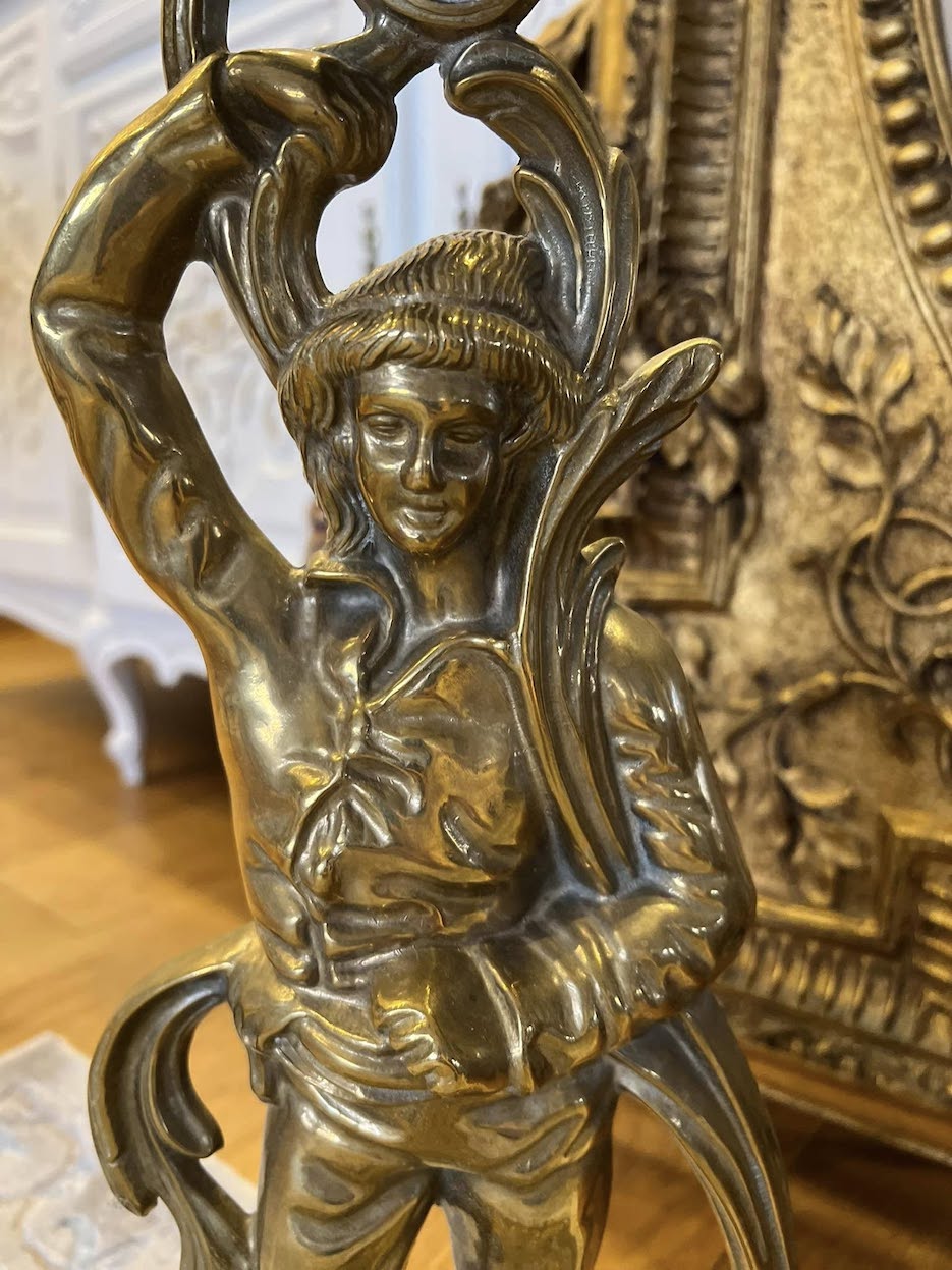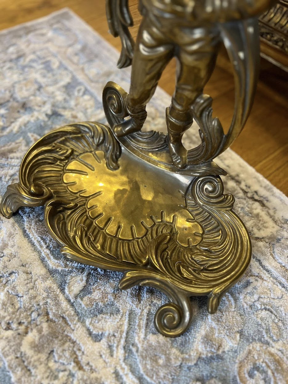 ♦ Viršuje – dekoratyvi laikiklio kilpa, o centrinę ašį puošia figūrinė skulptūrinė kolona, būdinga XX a. vidurio dekorui.