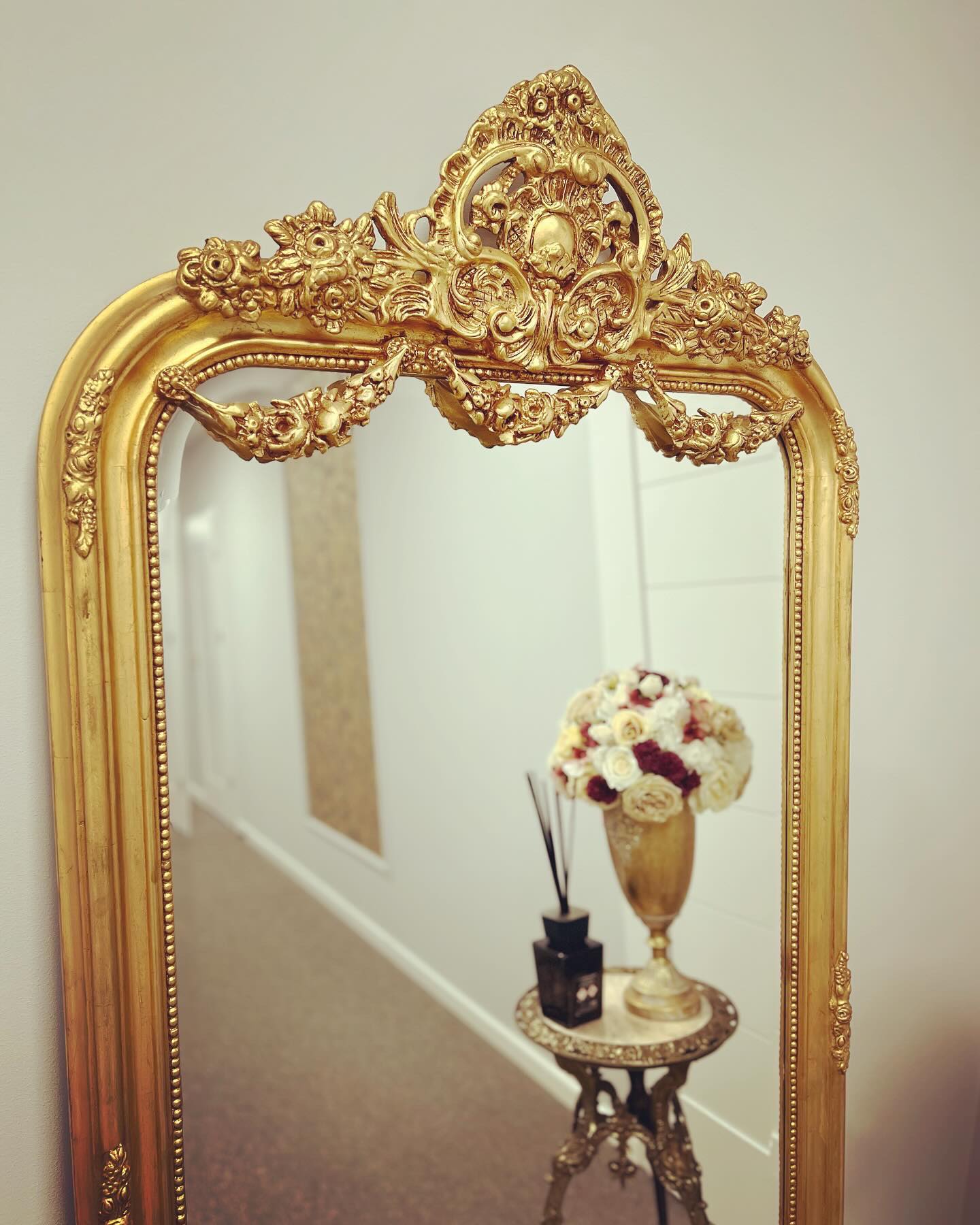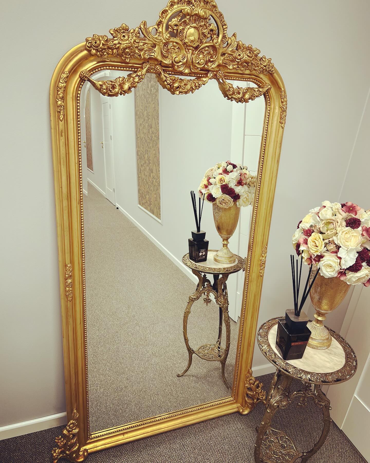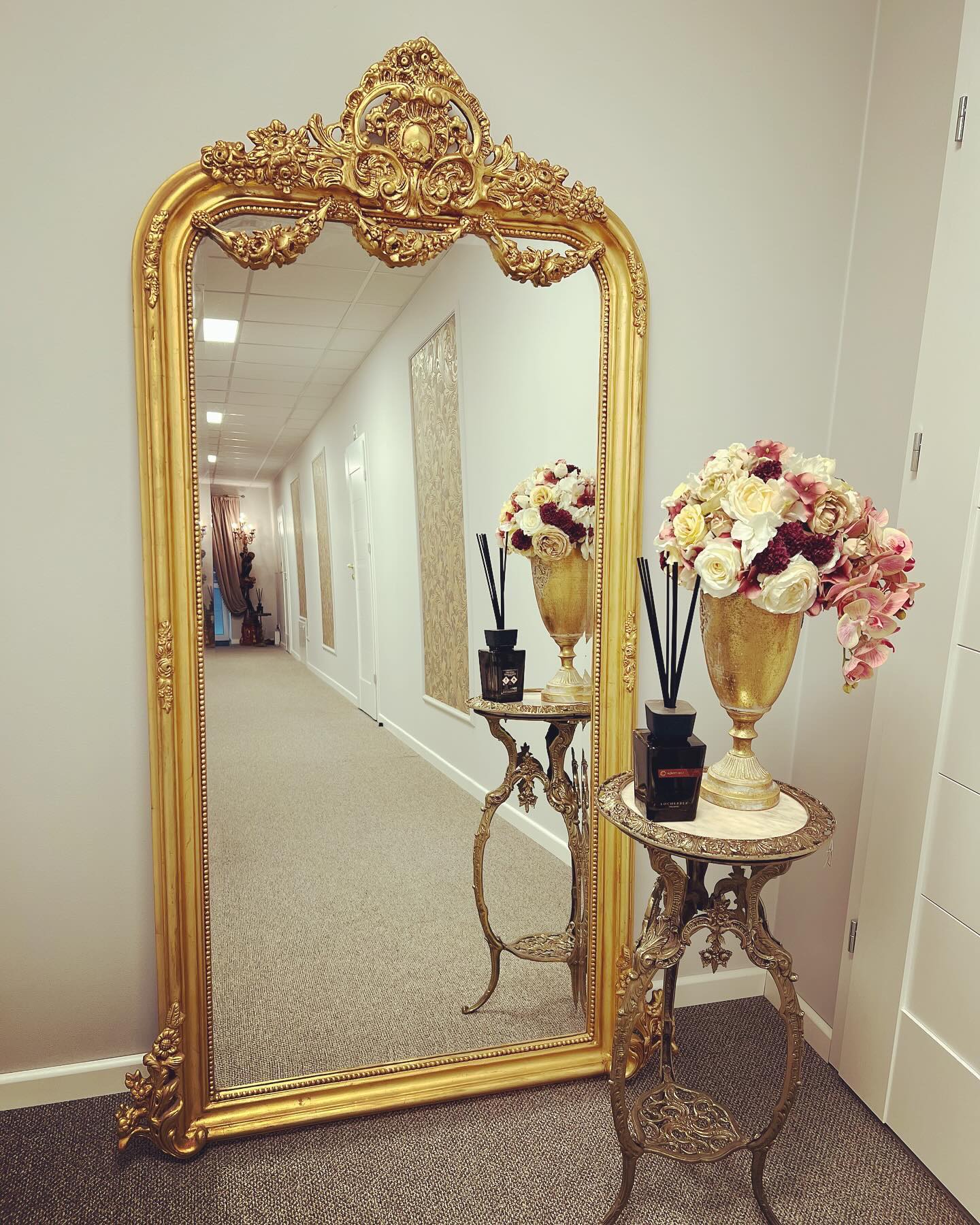 Labai dailus, baroko stilistikos veidrodis su išraiškingais, dekoratyviais raižiniais. Aukso spalvos medinis rėmas suteikia prabangos pojūtį, o facetuotas veidrodis dar labiau išryškina kokybę ir eleganciją.