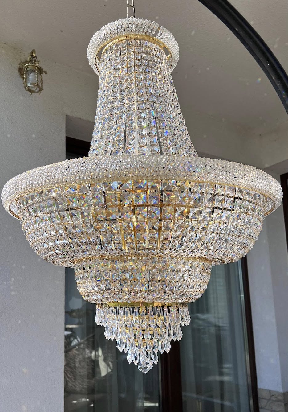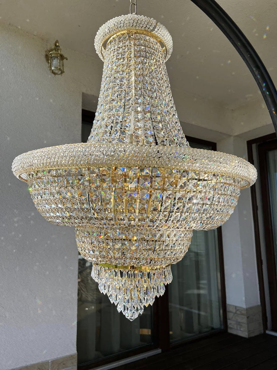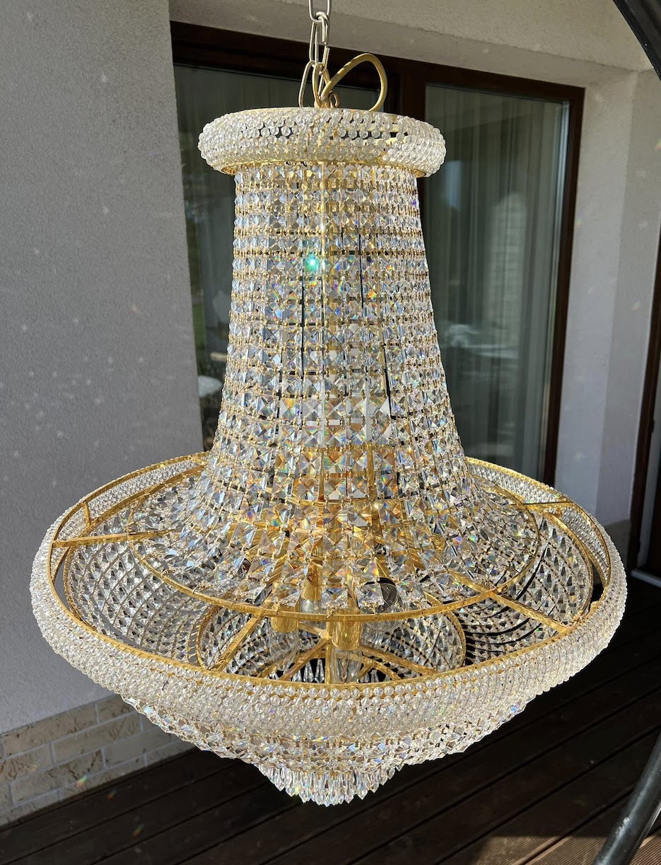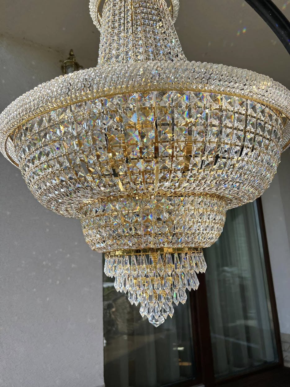 Labai dailus ir išskirtinio grožio, naudotas kalnų krištolo sietynas. Puikiai tinka svetainei ar valgomajam, kur svarbus solidus stilius ir elegancija.