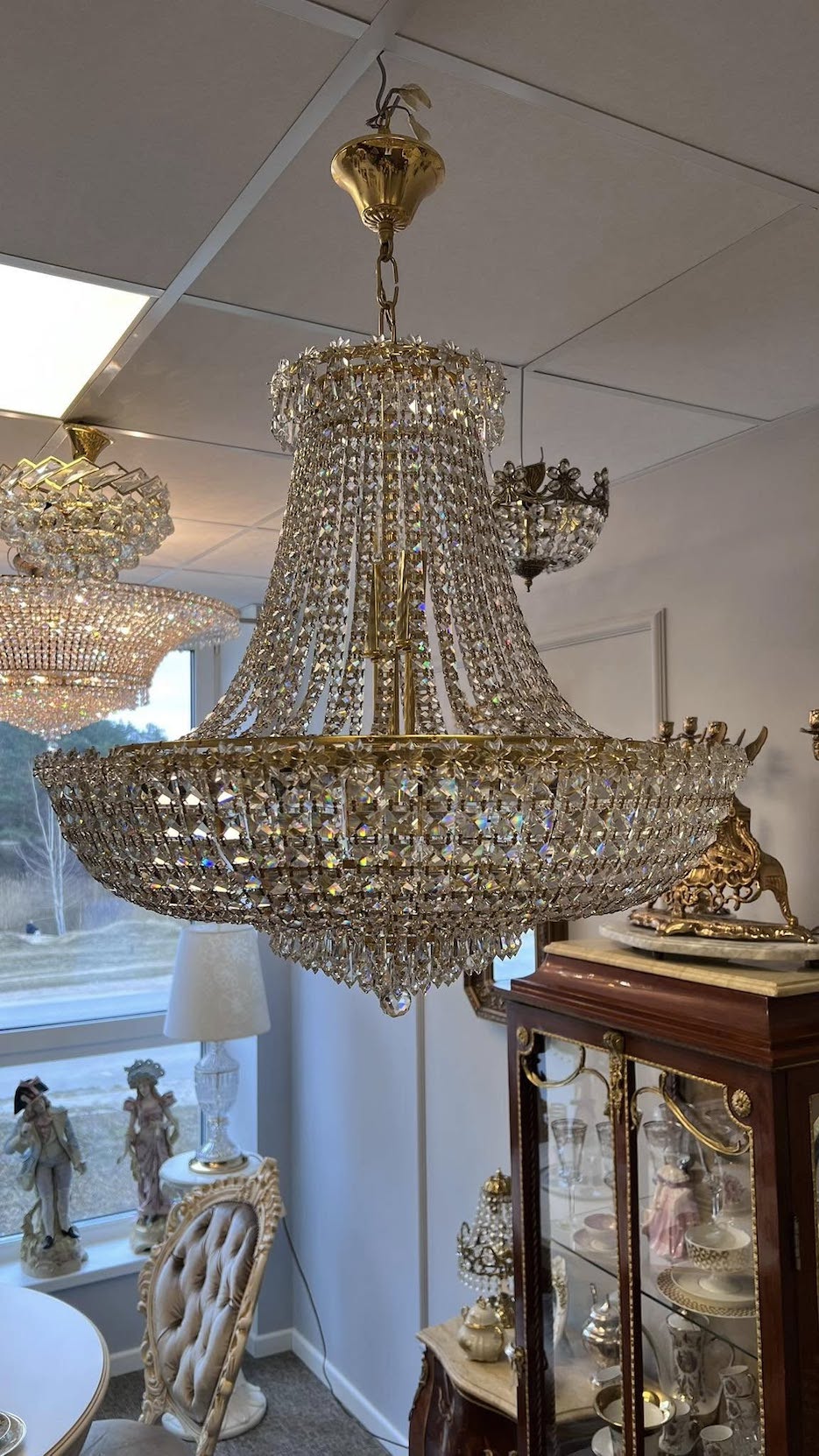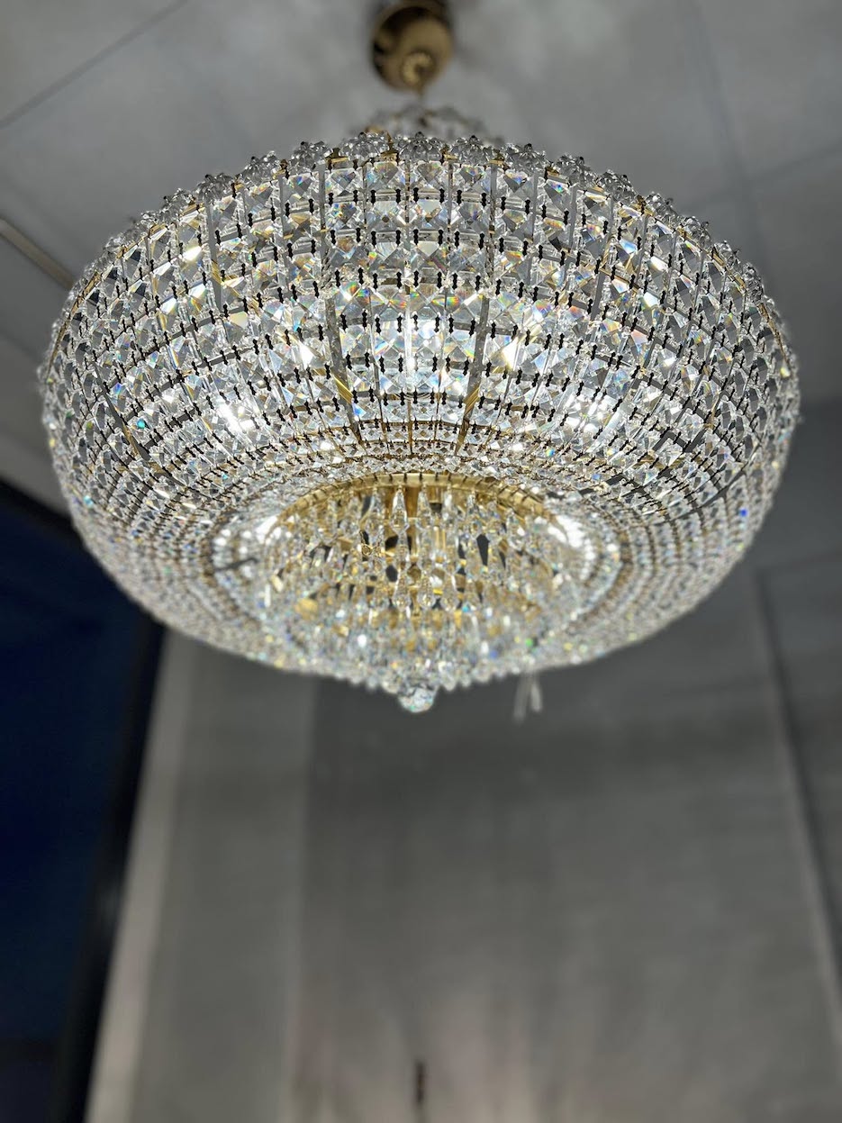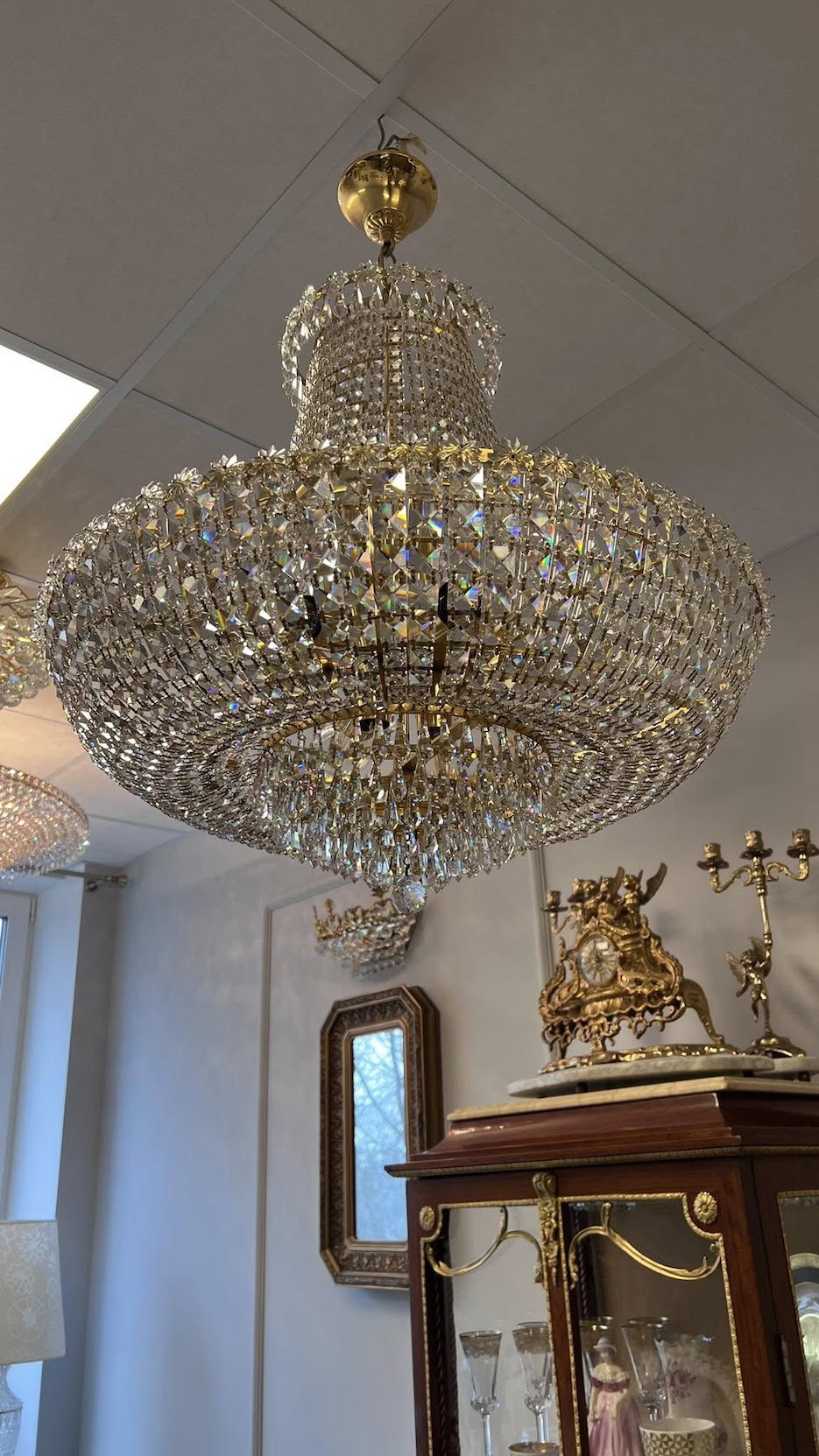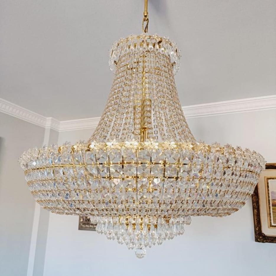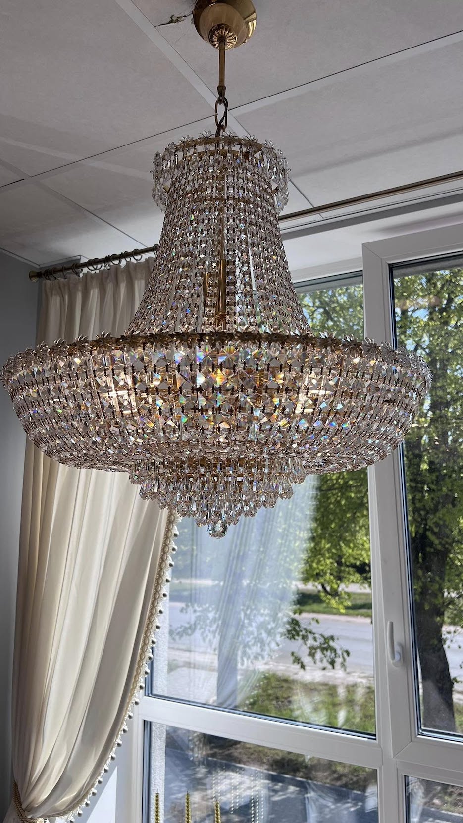 Išskirtinis klasikinio stiliaus kalnų krištolo sietynas – elegantiškas ir akį traukiantis šviestuvas, sukurtas rafinuotam interjerui.