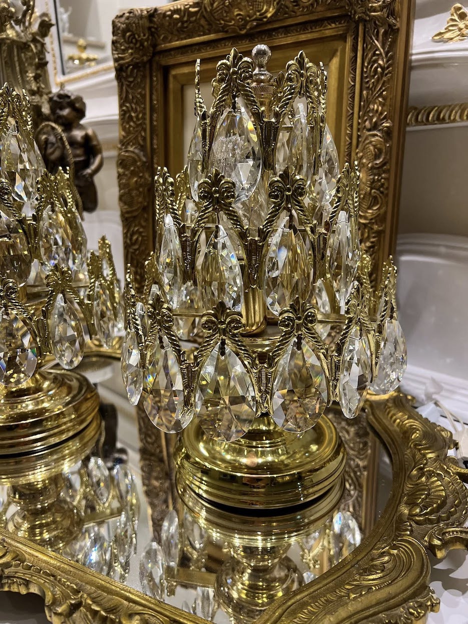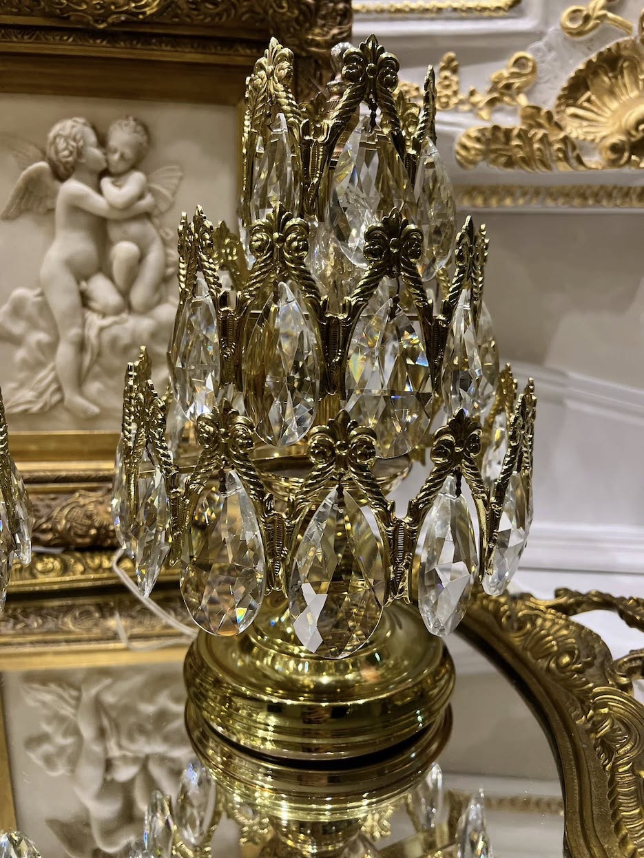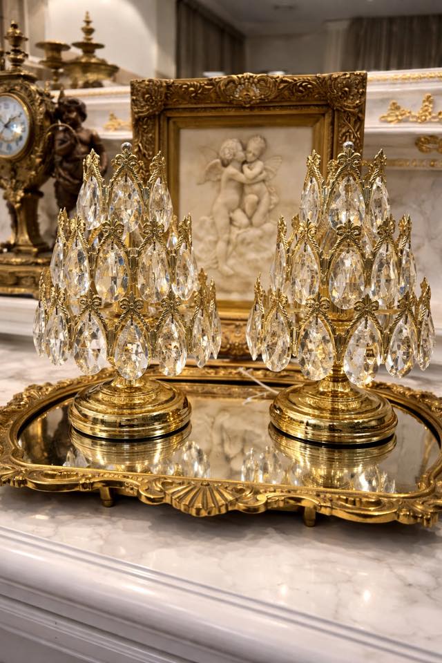 Prabangūs bronzos ir krištolo staliniai šviestuvai „Antique Reverie”