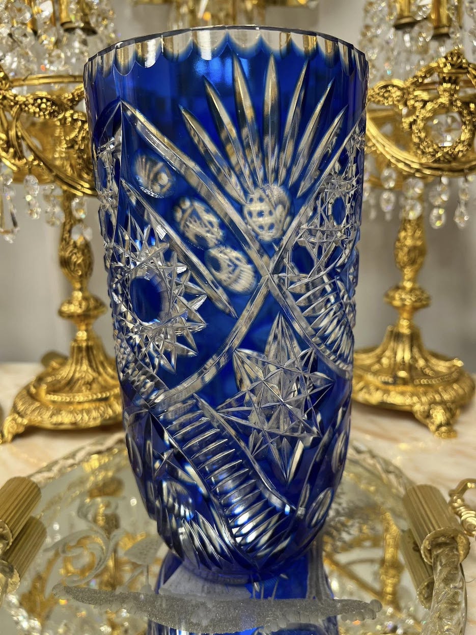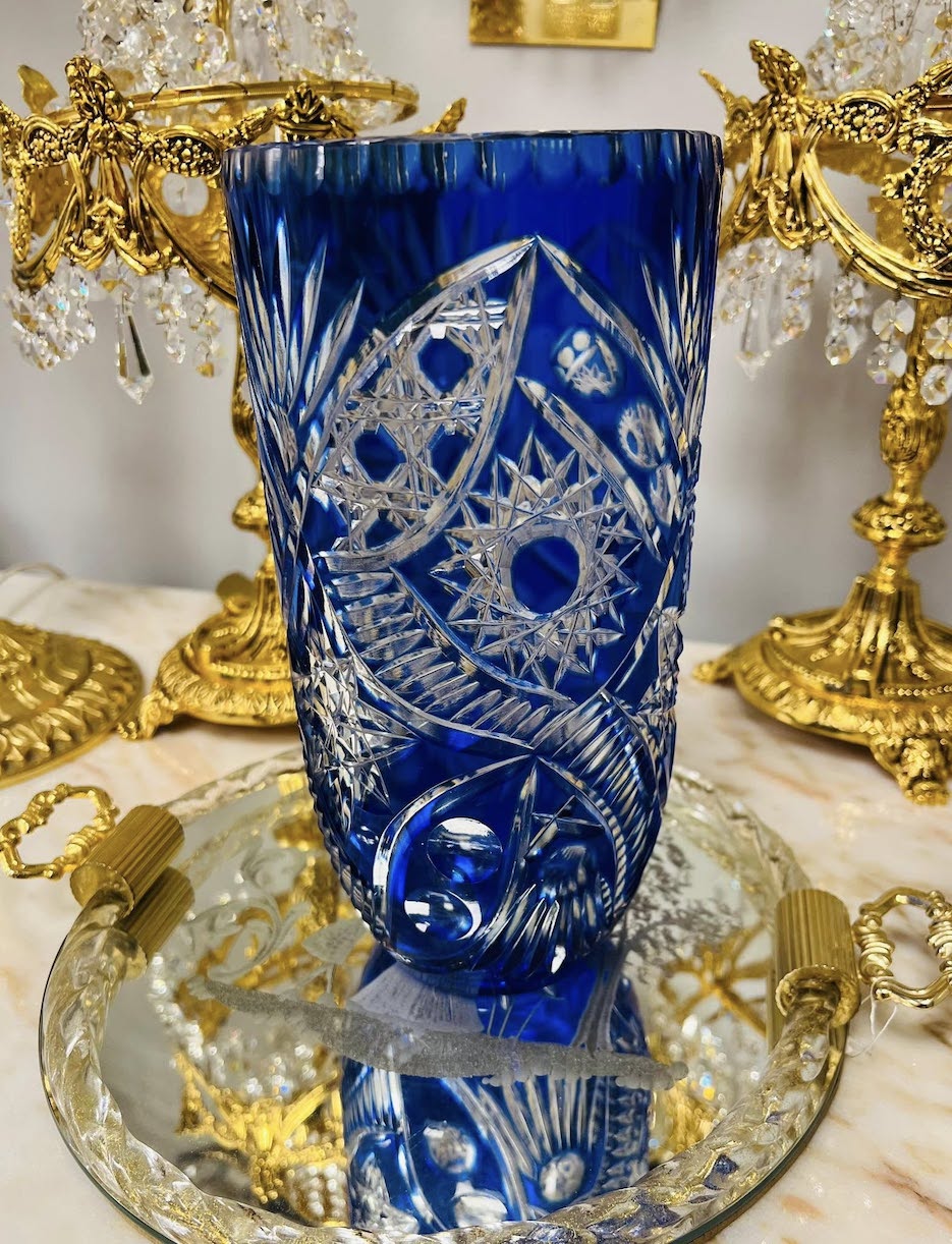 Puošni, vintažinė, sodriai mėlyno krištolo vaza gėlėmsPrieinamumas: Liko 1