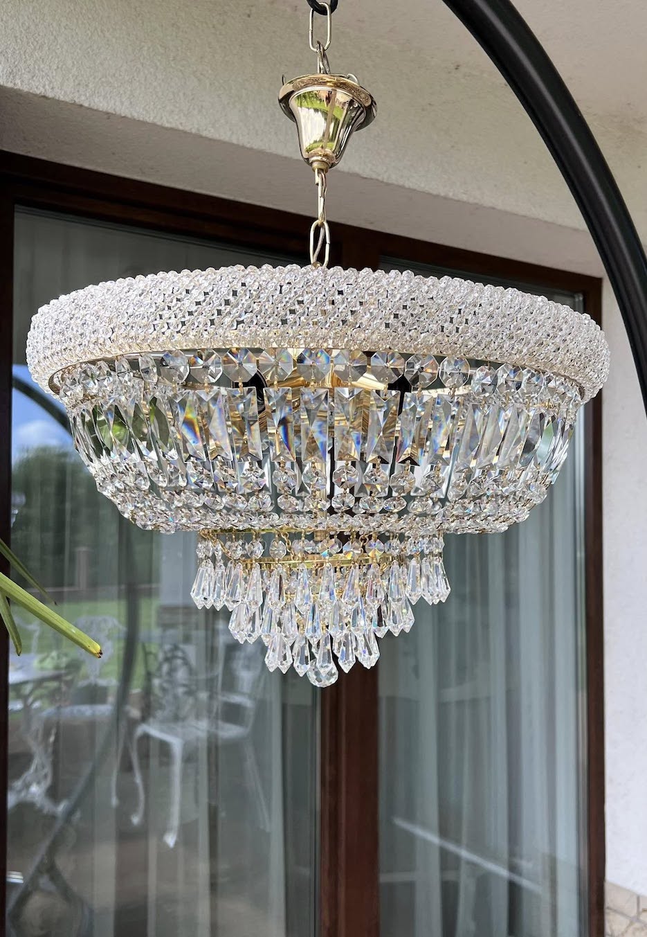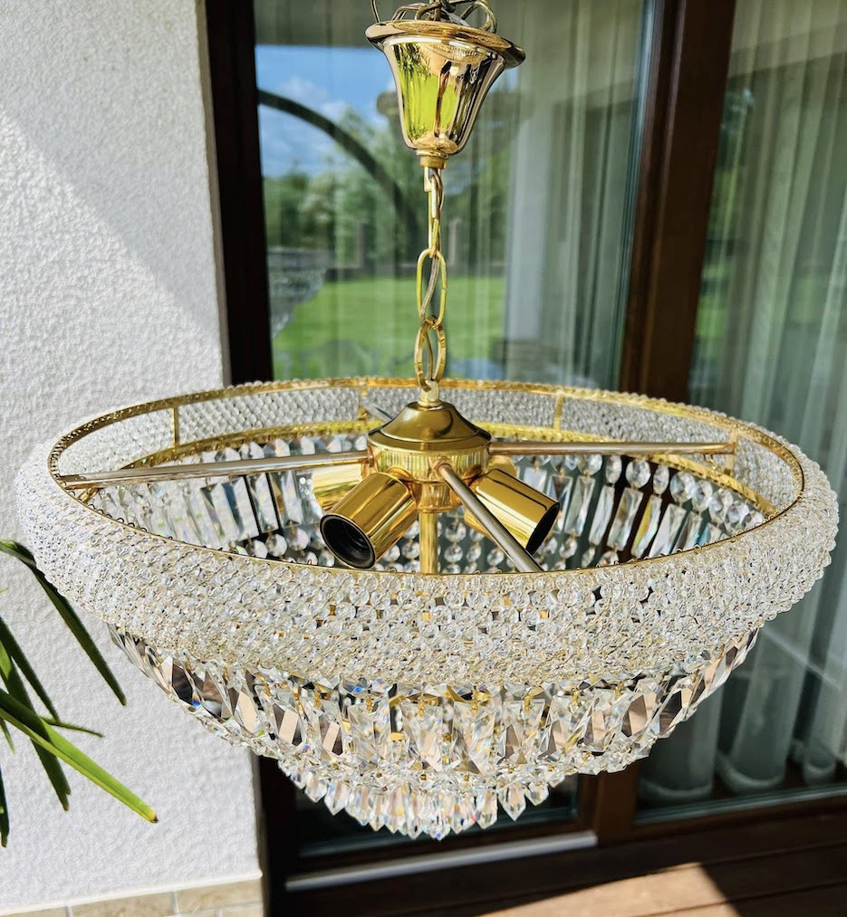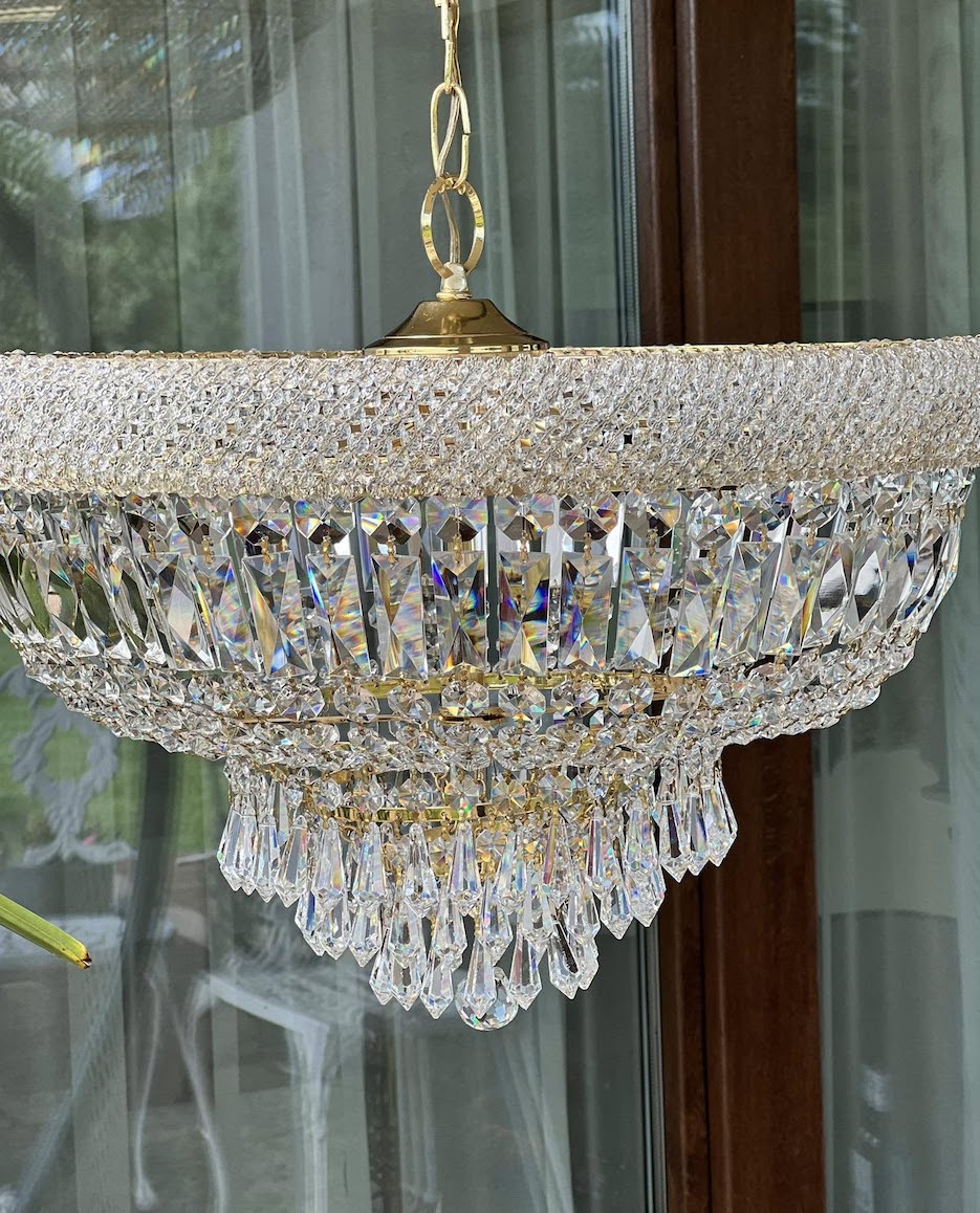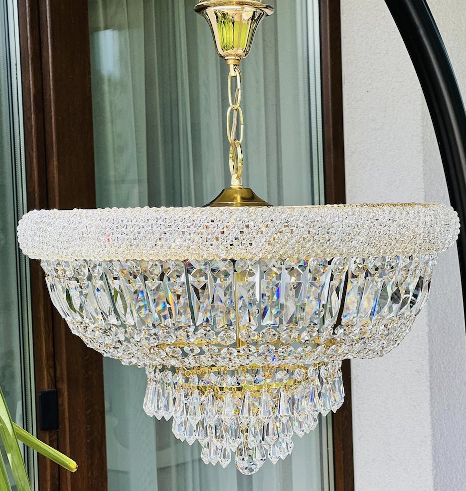 Rinktinio grožio krištolinis šviestuvas! Šis elegantiškas šviestuvas iš skaidraus krištolo puikiai tiks ieškantiems prabangos ir šviesos žaismo interjere. Klasikinio dizaino, gausiai dekoruotas blizgiais kristalais, nedidukas, bet labai gražus ir puošnus!