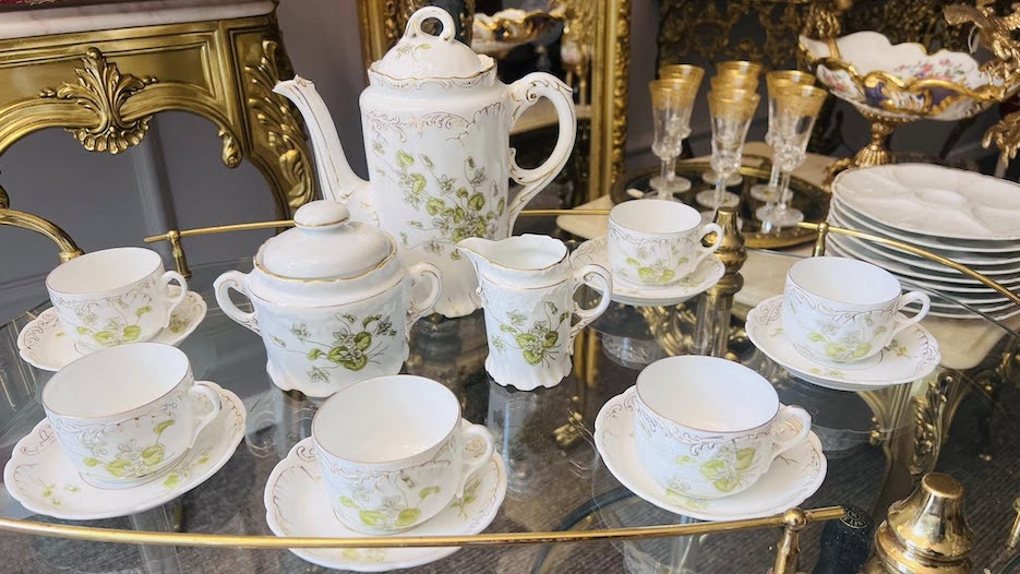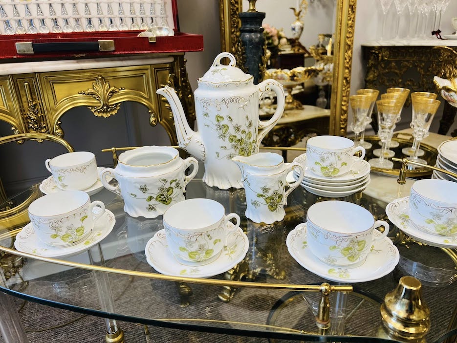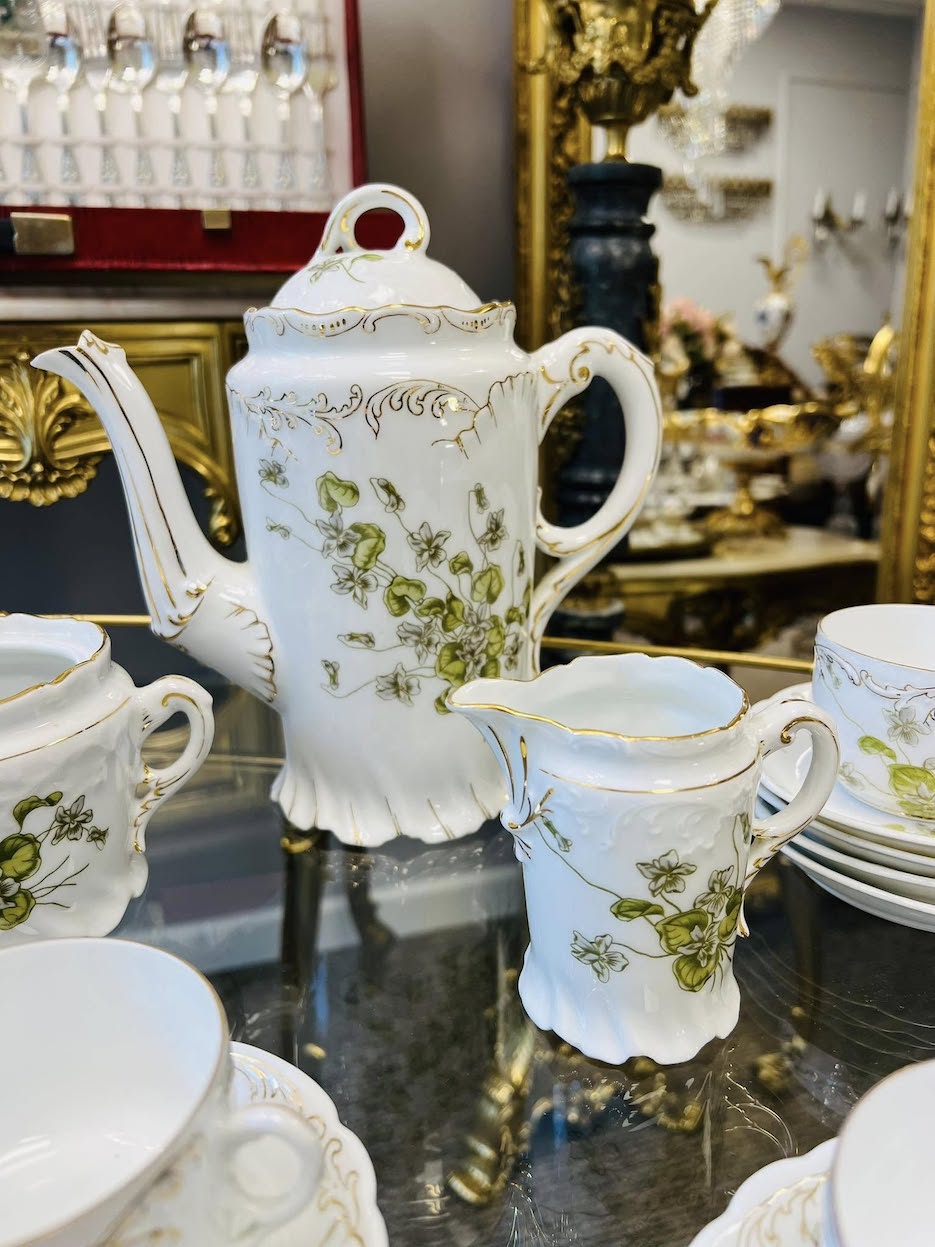 Unikalus ir elegantiškas, daugiau nei 100 metų senumo antikvarinis kaulinio porceliano servizas