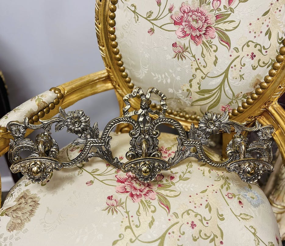 Grakšti, dekoratyvi klasikinio stiliaus sieninė kabykla, puošta subtiliais gėlių ornamentais ir elegantišku kaspinėlio motyvu centre.