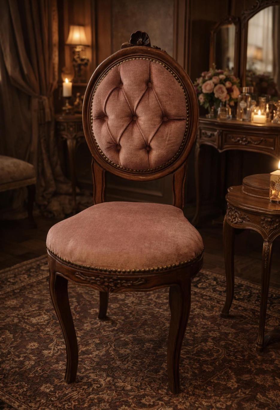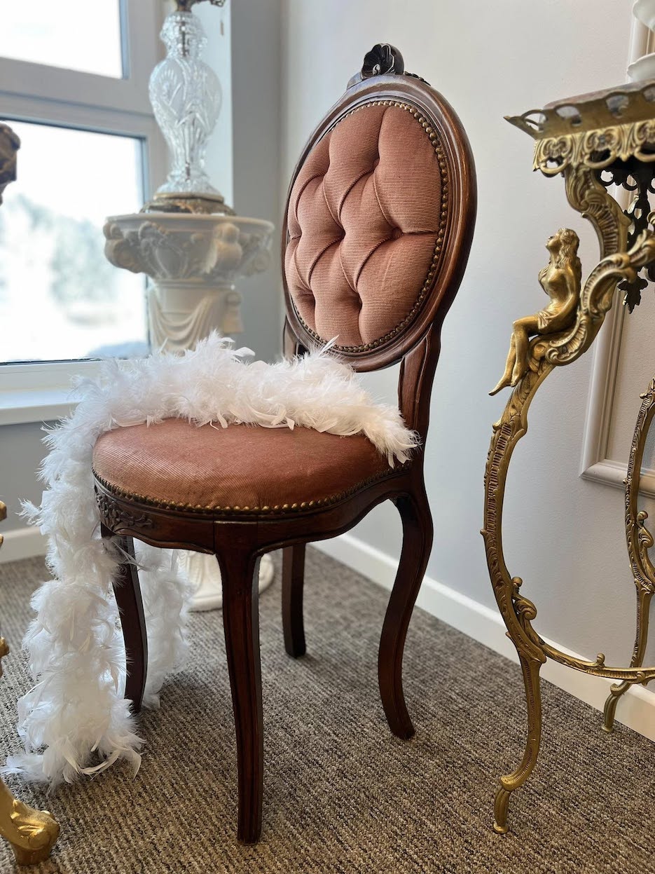Vintažinė, naudota rokoko stiliaus kėdė „Boudoir Rose”