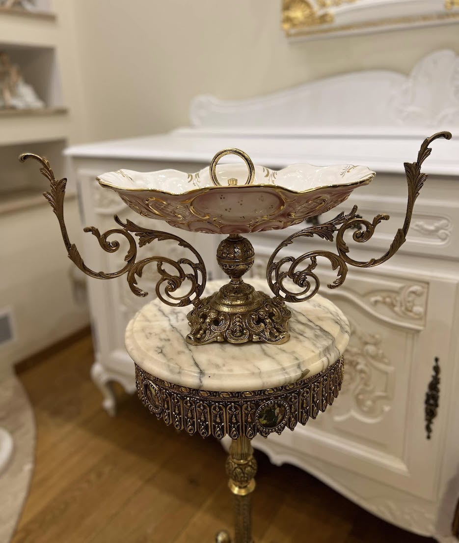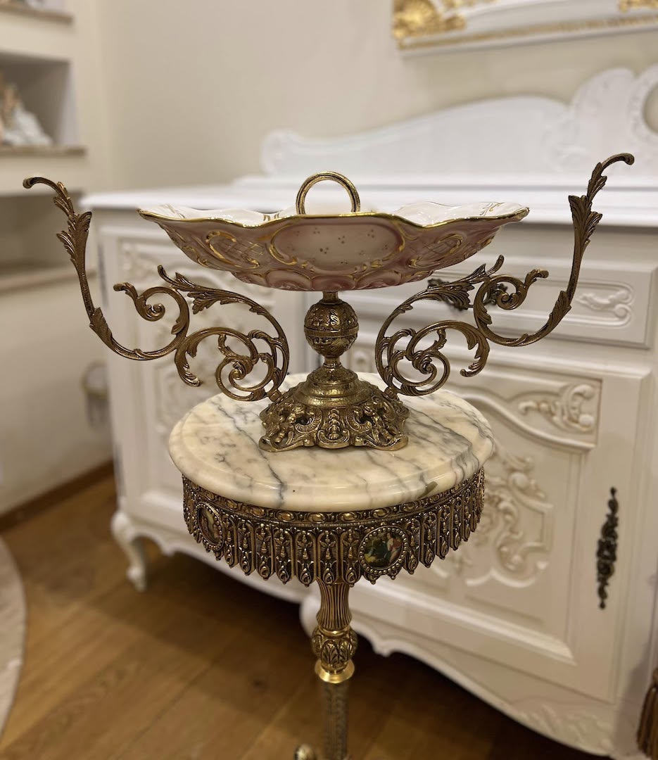 Išraiškinga, istorinės stilistikos, vintažinė vaisinė, pagaminta apie 1930 m. Tai puošnus ir kartu funkcionalus interjero akcentas, būdingas XX a. pradžios salonams ir valgomojo erdvėms.