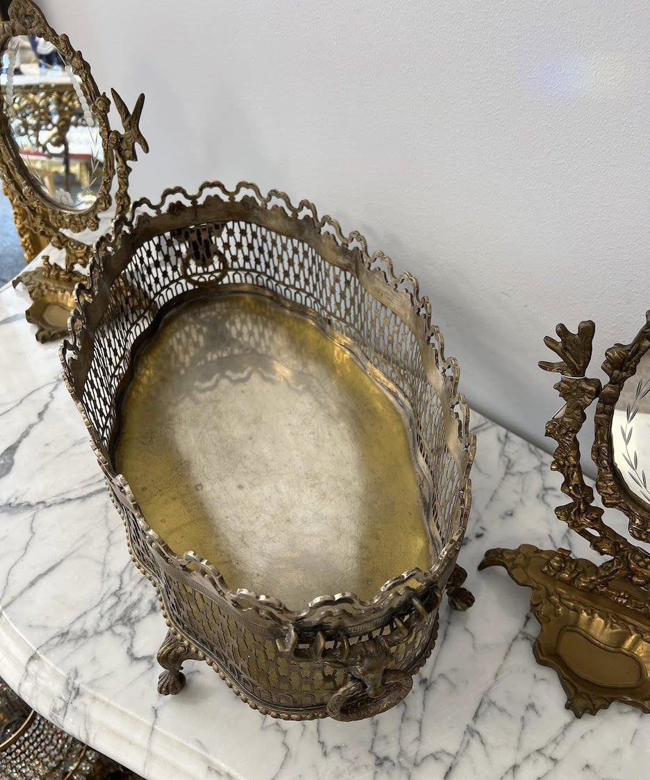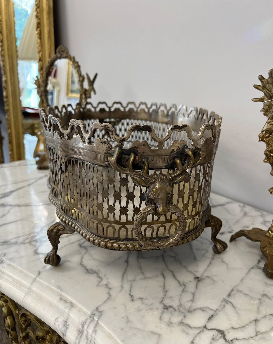 Vintažinis žalvarinis, ažūriniu kraštu vazonas „Antique Basket”