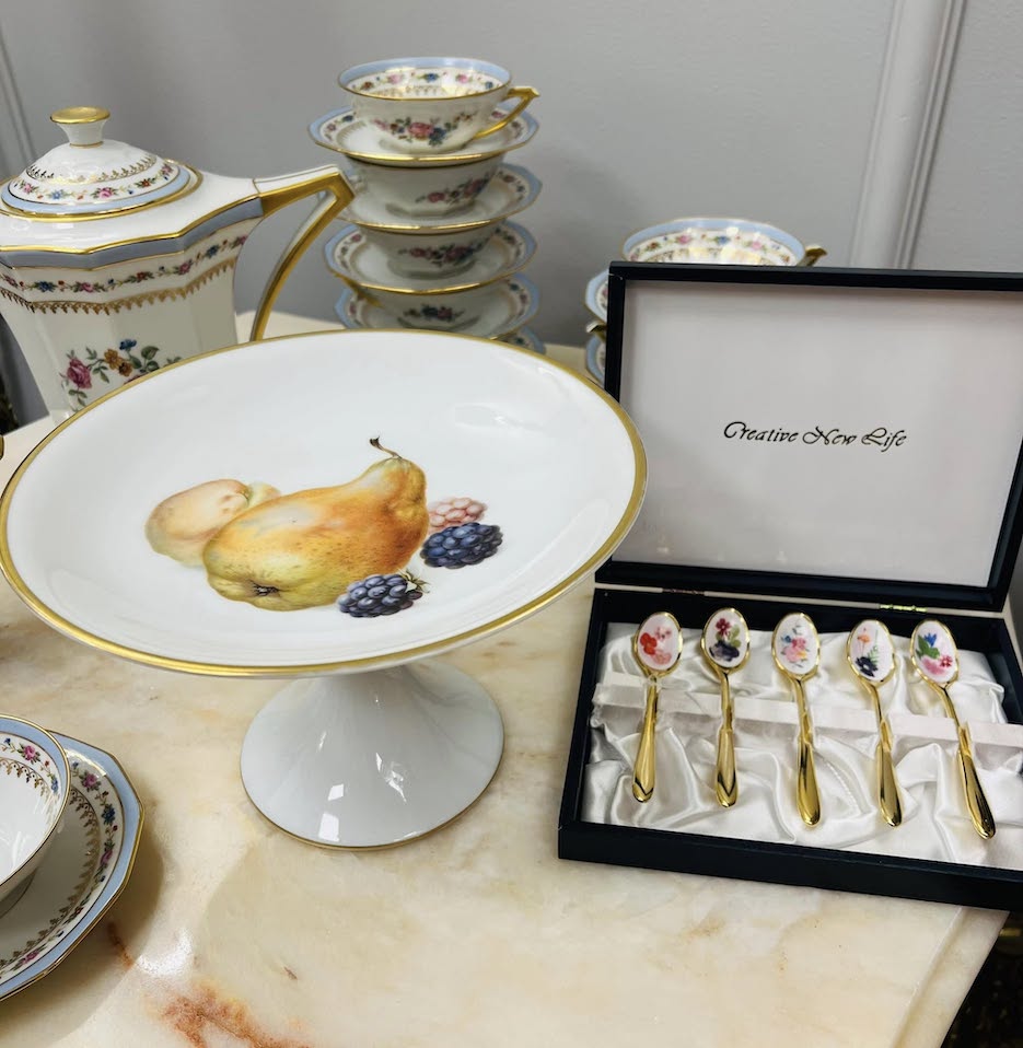 Antikvarinis plonyčio porceliano „Limoges Unique“ arbatos servizas (Prancūzija, 1929 m.)